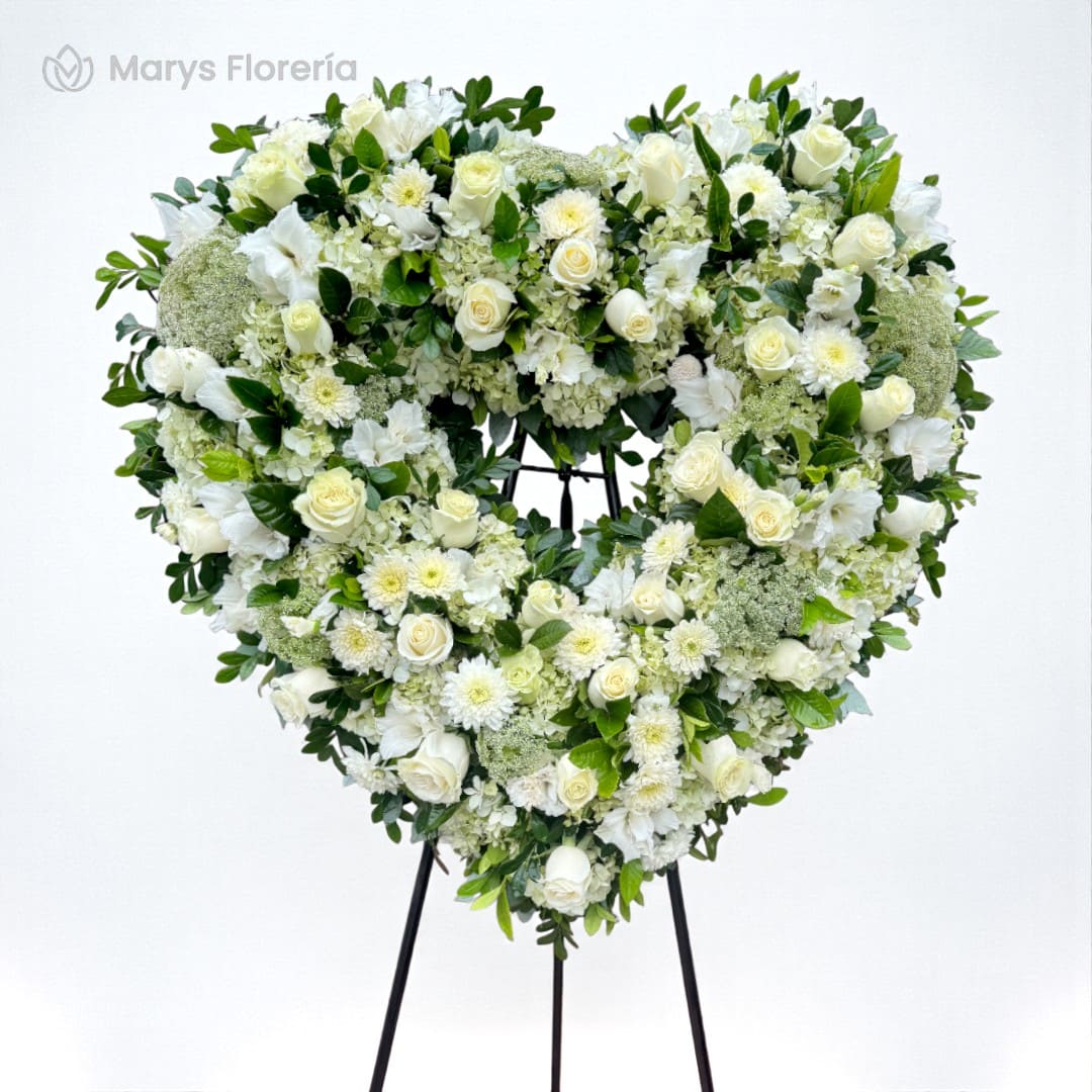 Corona premium elaborada con una fina combinación de 24  rosas  blancas, logrando una composición equilibrada que transmite paz y armonía.