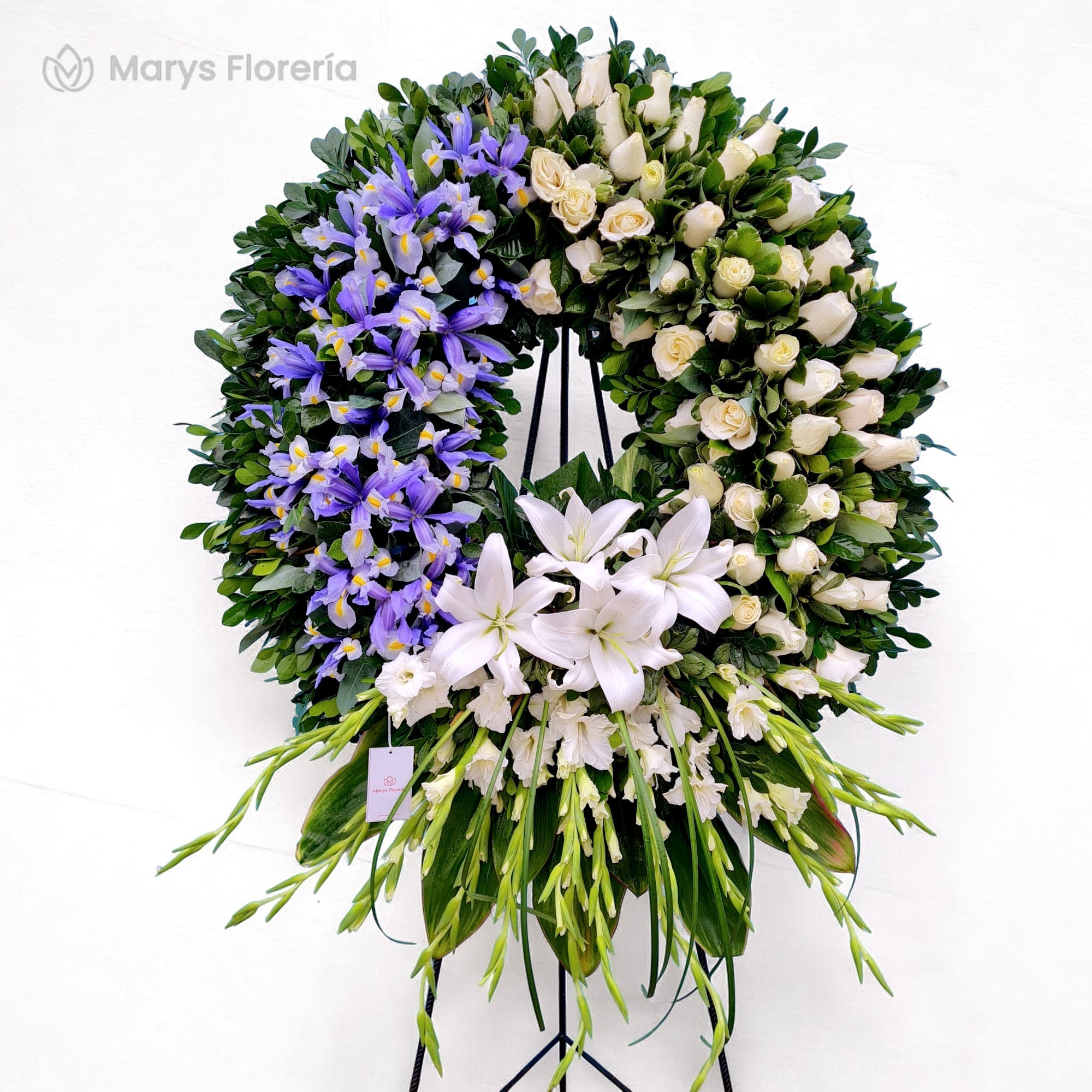 Corona premium elaborada con una fina combinación de 36 rosas, logrando una composición equilibrada que transmite paz, pureza y armonía.