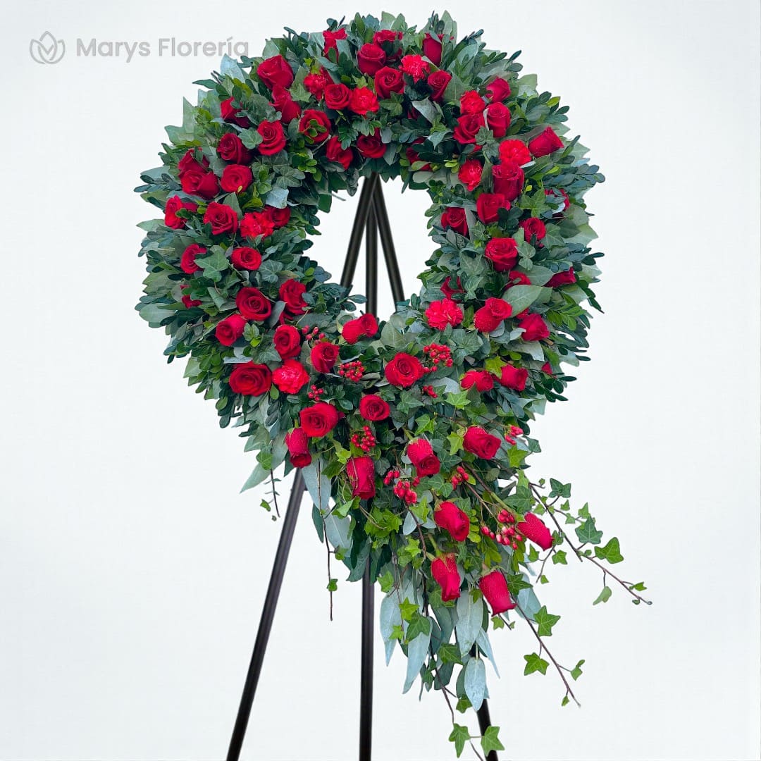 Corona premium elaborada con una fina combinación de 72 rosas rojas , logrando una composición equilibrada que transmite amor.
