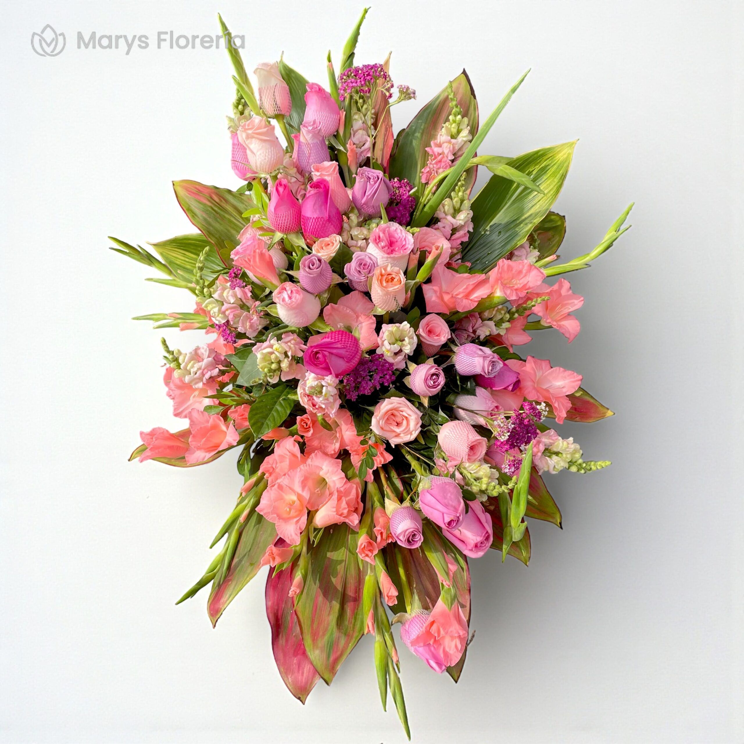- Gladiolos complementadas de un mix de verdes según disponibilidad.