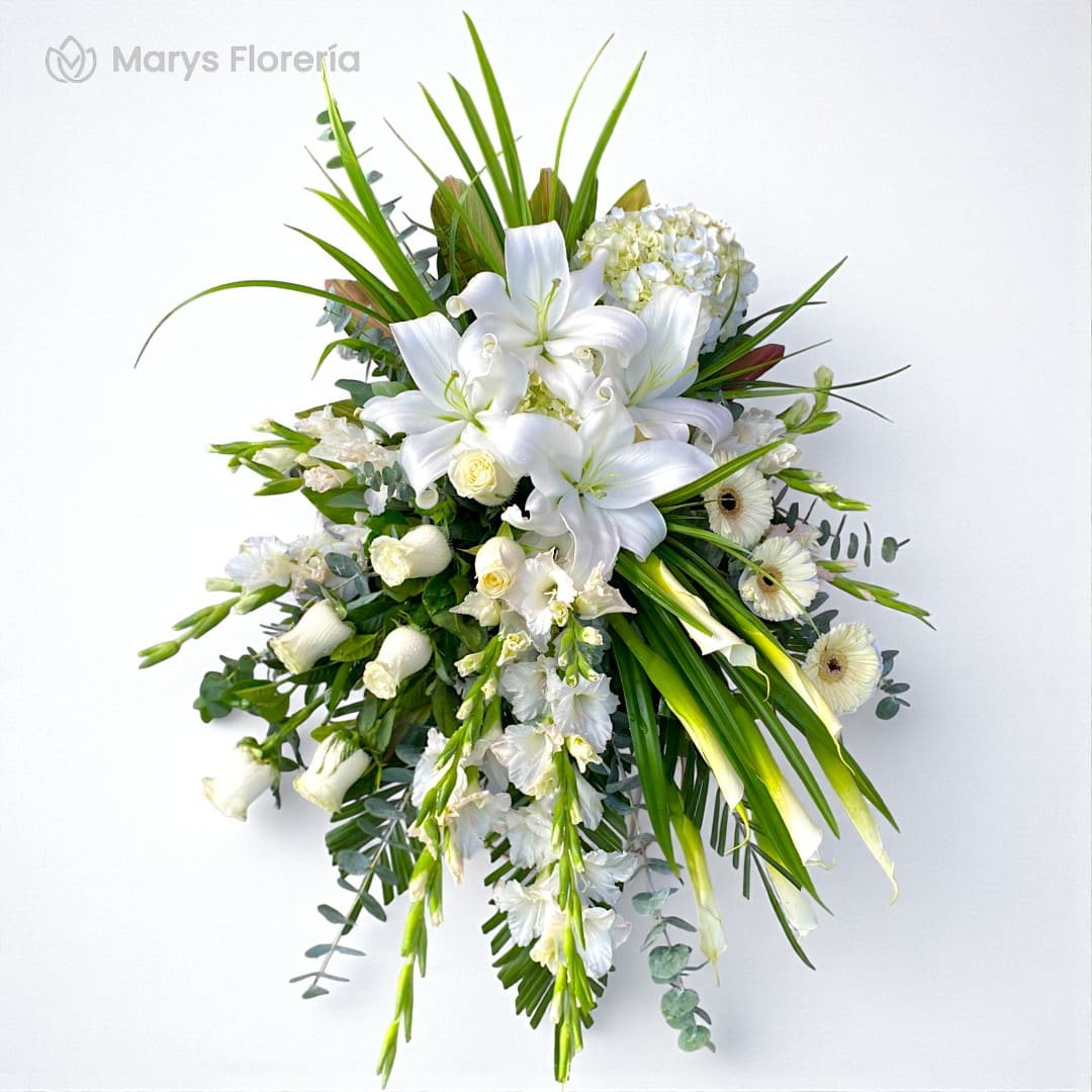 - Arreglo floral con 8 rosas, hortensias, lilium, gerberas y gladiolos complementada de verdes según disponibilidad.