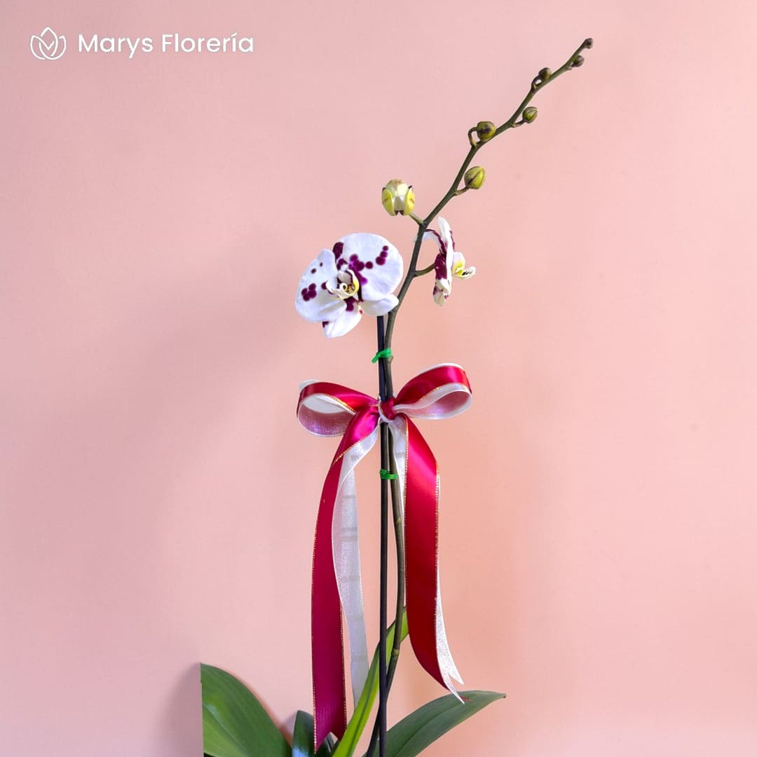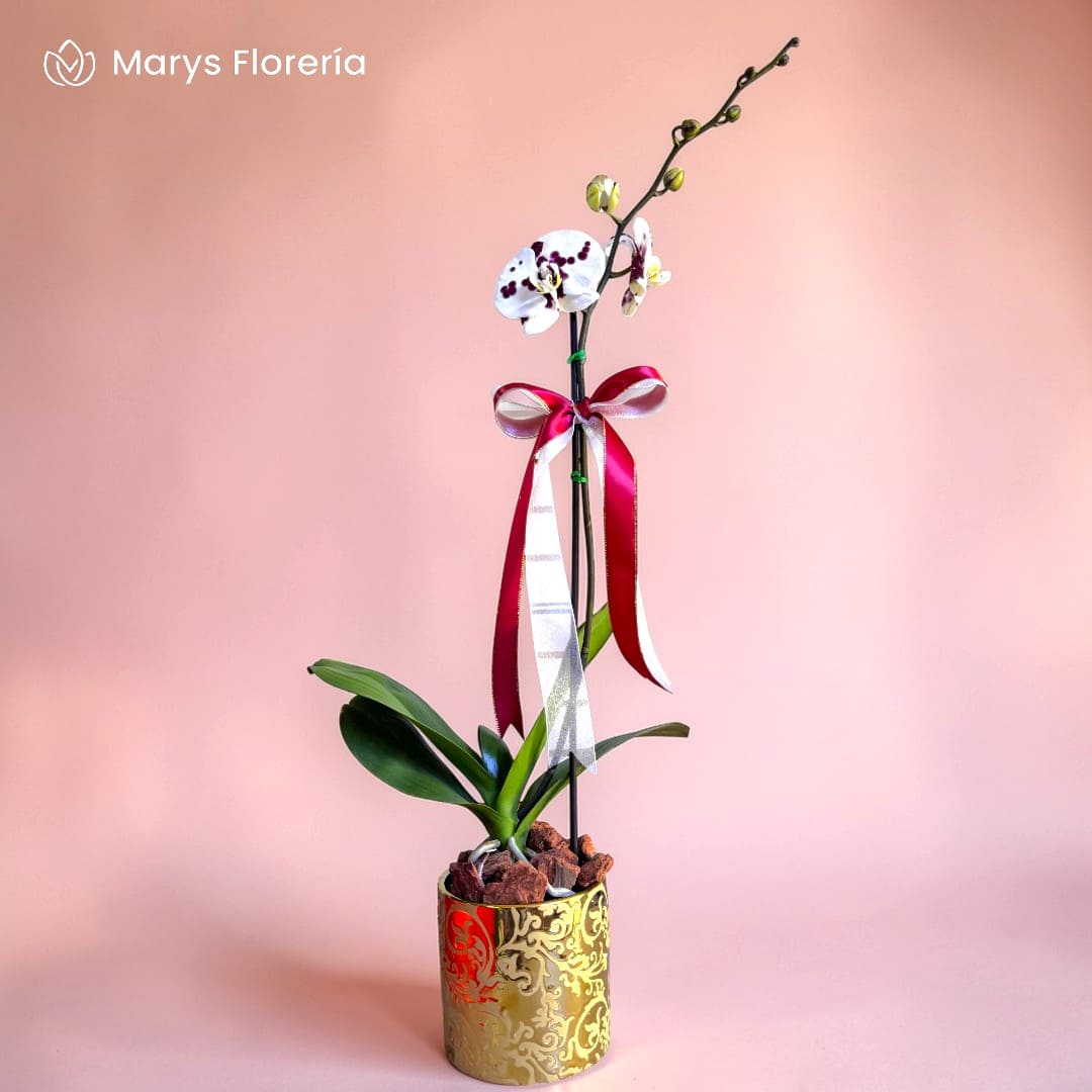 - Planta de Orquídea blanca chispa (La tonalidad del color y tamaño puede variar de acuerdo a disponibilidad)
