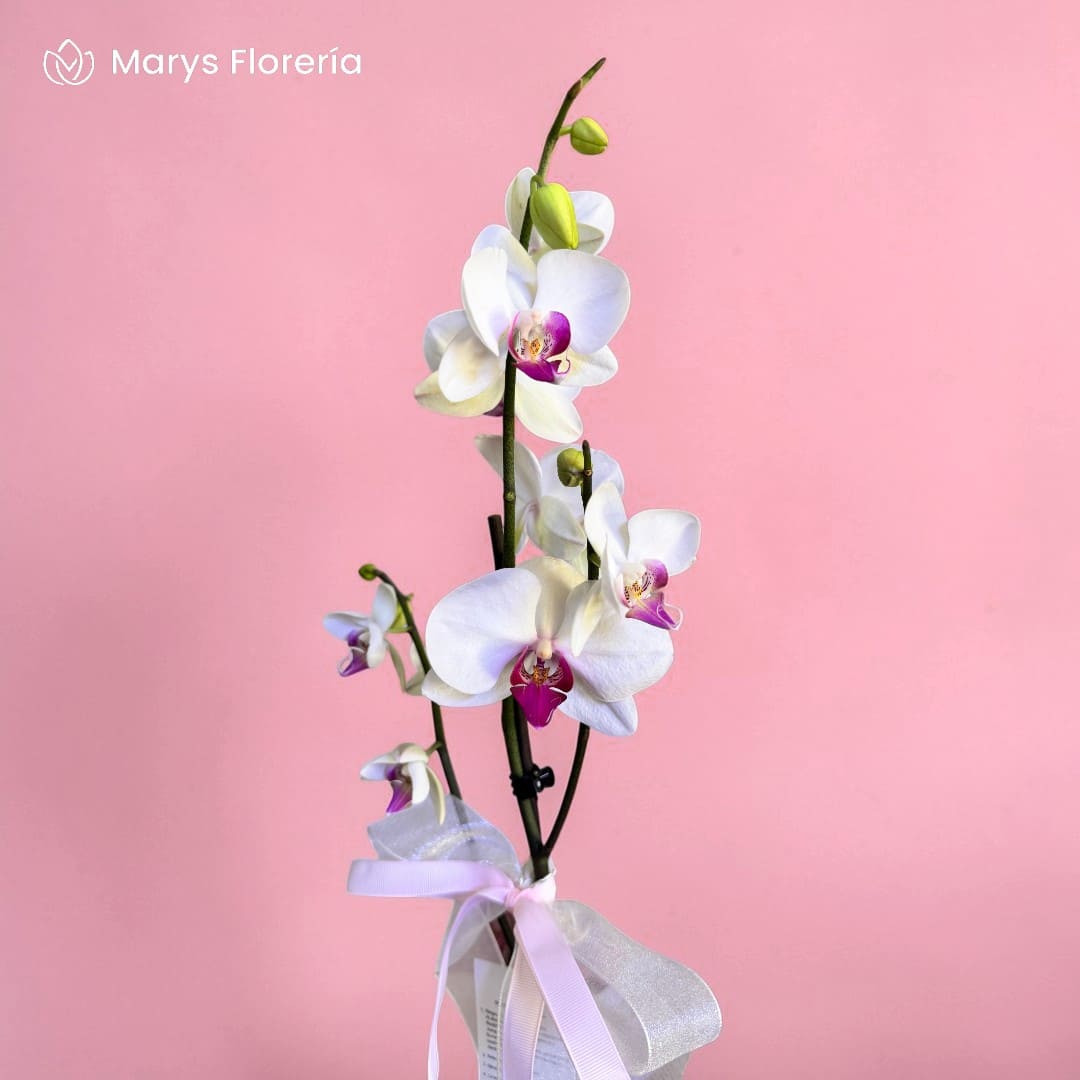 ORQUIDEA BLANCA Y FUCSIA 01 VARA RAMIFICADA