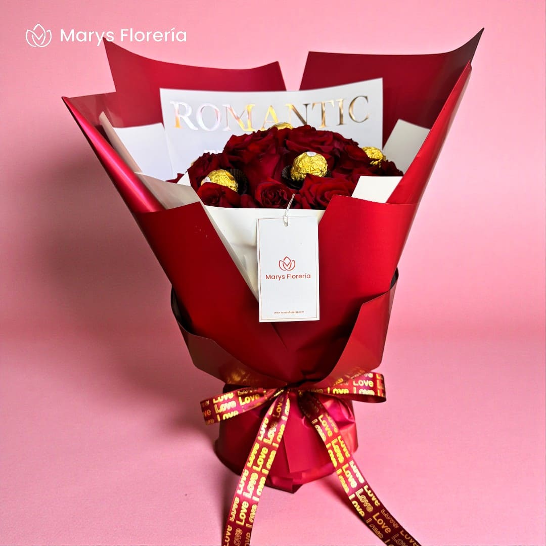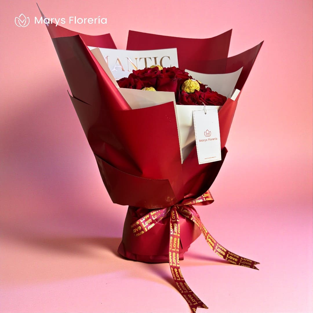 - Hermoso ramo de 18 Rosas rojas + 6 Bombones Ferrero Rocher